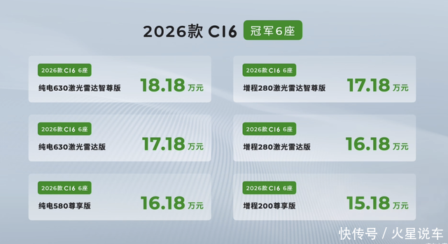 2026款零跑C16以15.18万-18.18万元的官方售价区间上市,在延续品牌高性价比基因的同时,通过精准定位与多维升级重构了差异化竞争优势,而其价格策略的核心在于“降门槛、增价值”,相较2024款车型,起售价下探4000元,且新增15.18万起的增程版及16.18万起的纯电版5座车型,覆盖更广泛的家庭用户需求。同时新车还叠加了终身三电质保、5000元置换补贴等9大权益,显著强化了用户感知价值。