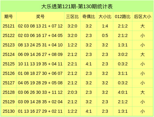大乐透第25131期前区分析